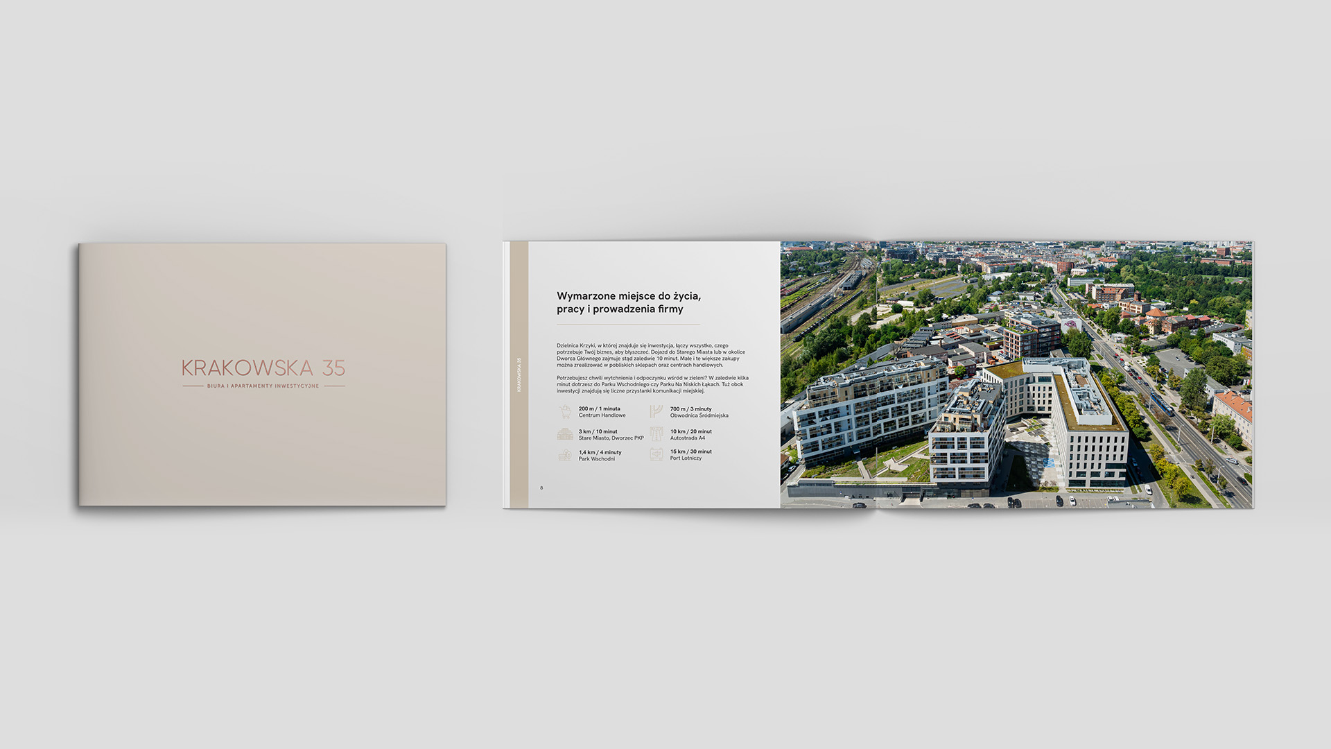 Projekt został zrealizowany jako komplet narzędzi wspierających sprzedaż i wizerunek inwestycji, z zachowaniem spójności wizualnej i klarownego przekazu.