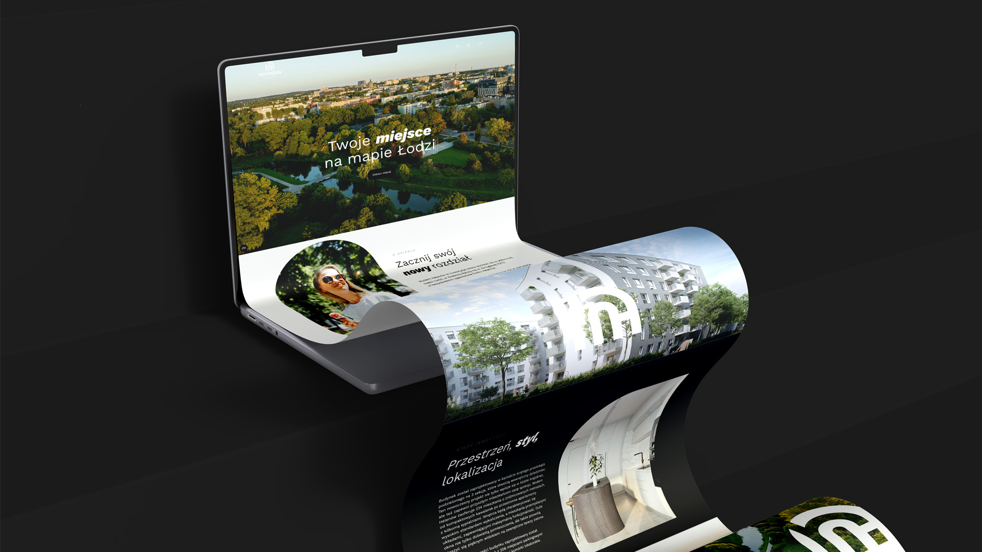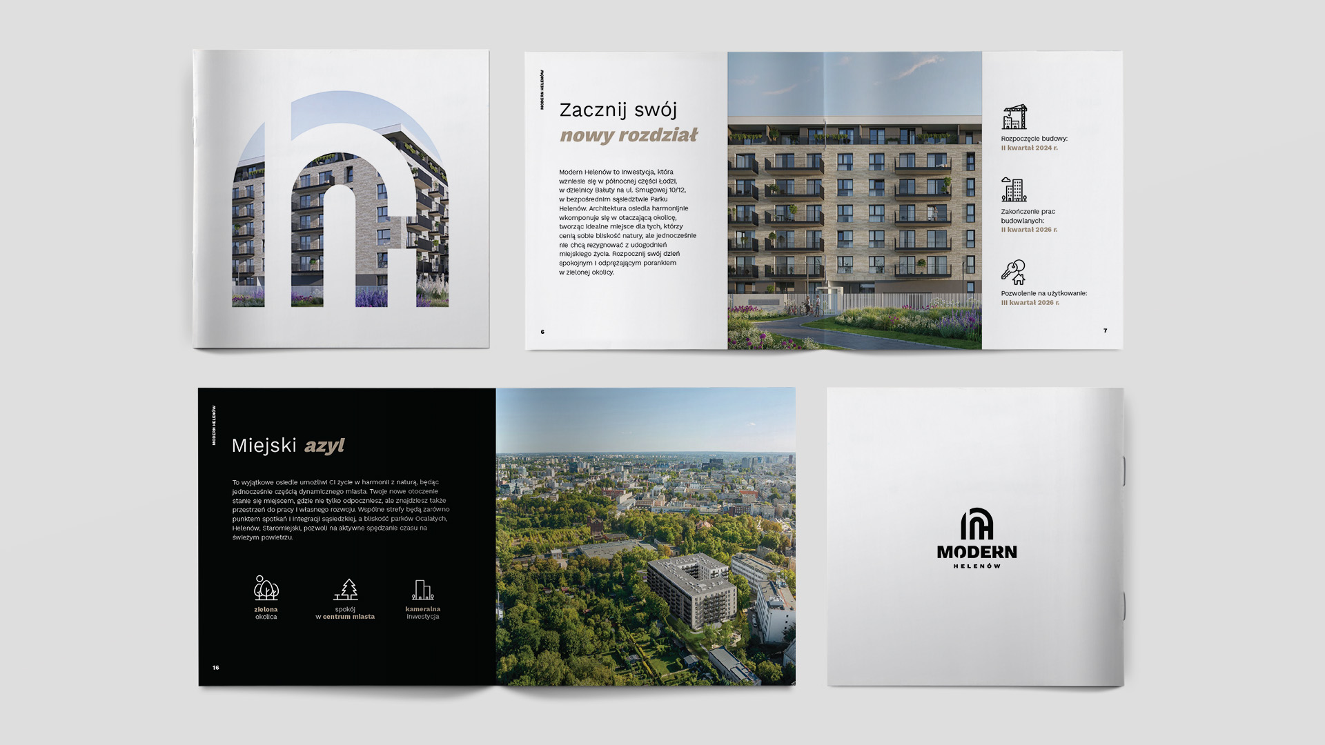 Folder wspiera komunikację inwestycji w bezpośrednim kontakcie z klientem, zachowując spójność z identyfikacją wizualną projektu i estetyką strony internetowej.