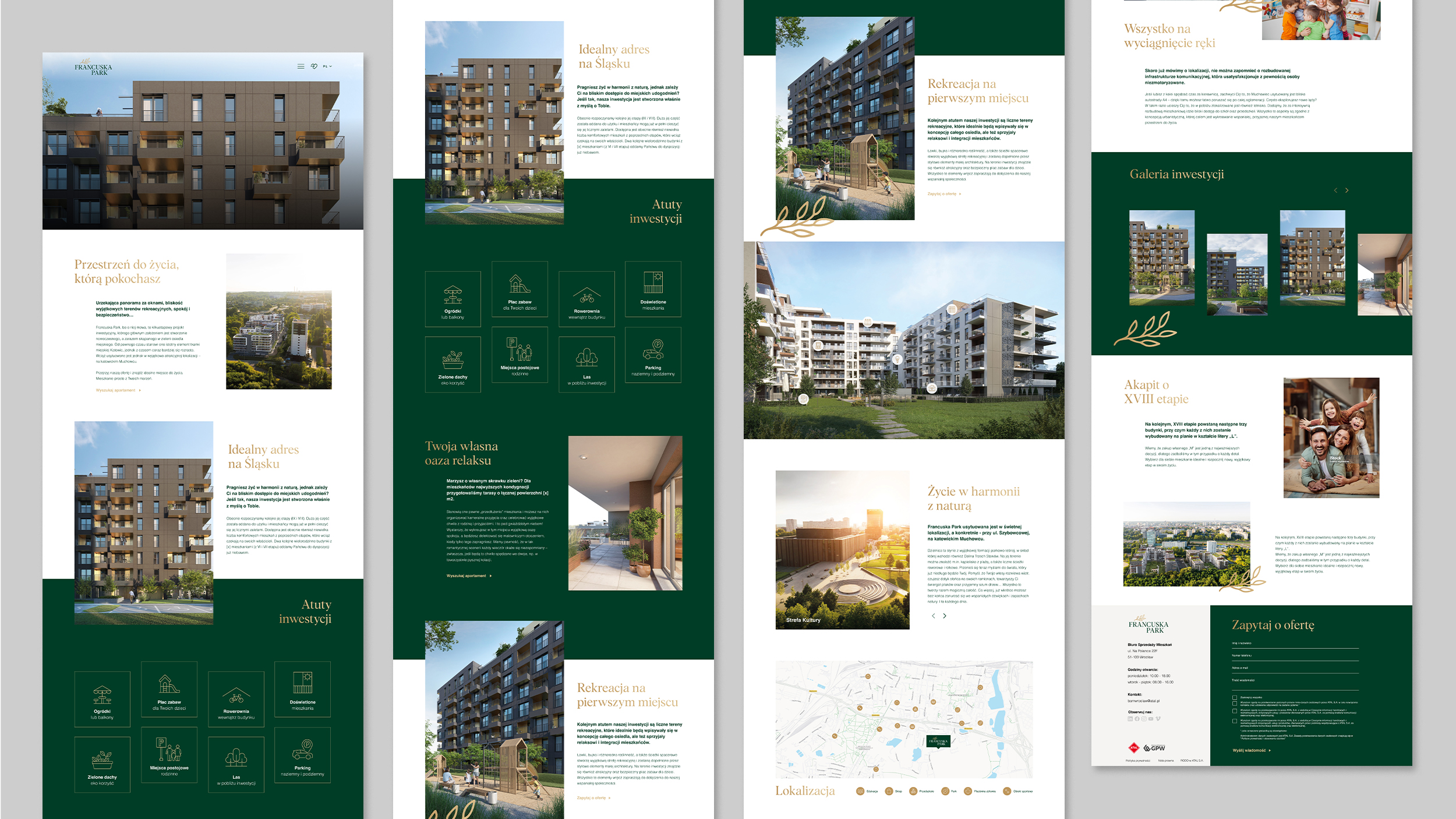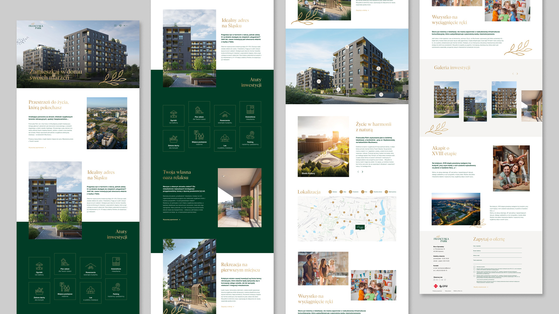 Strona internetowa inwestycji Francuska Park została zaprojektowana z myślą o przejrzystości, intuicyjnej nawigacji i pozytywnym doświadczeniu użytkownika. Zadbaliśmy o logiczną strukturę treści, czytelny układ informacji oraz estetykę dopasowaną do charakteru inwestycji.