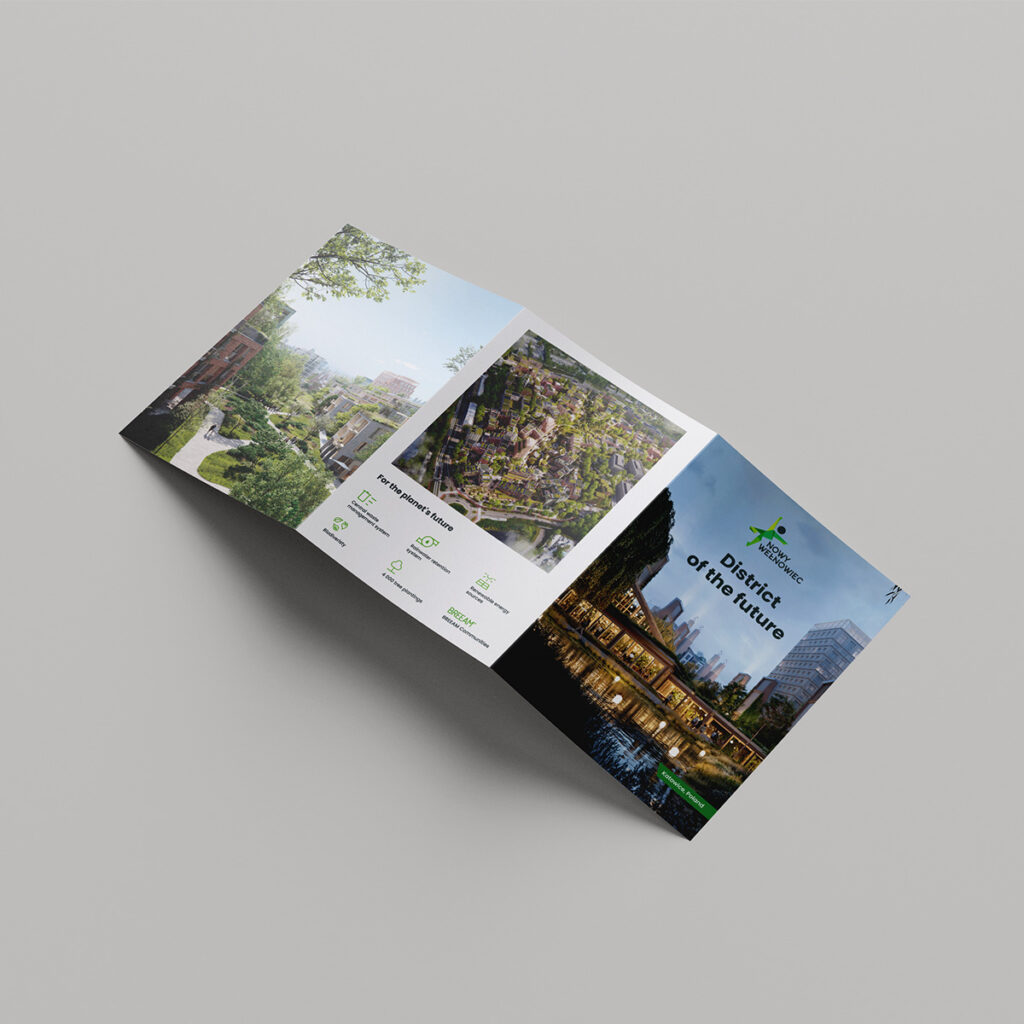 Zakres prac obejmował zarówno materiały drukowane, jak i obecność online, tworząc komplet narzędzi komunikacyjnych dla projektu Nowy Wełnowiec.