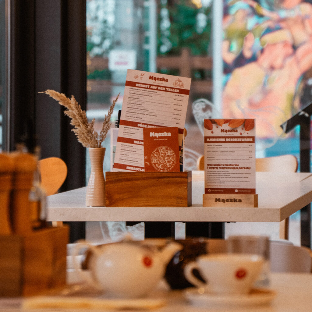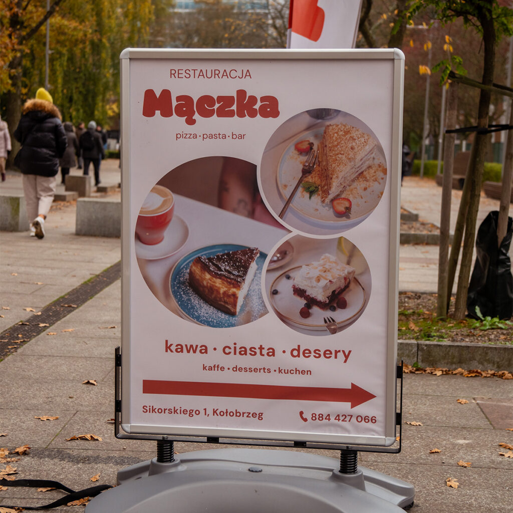 Identyfikacja wizualna restauracji Mączka została zaprojektowana jako lekka, charakterystyczna i zapadająca w pamięć. Projekt łączy kulinarne odniesienia z subtelnymi akcentami sportowymi, budując spójny i autentyczny wizerunek marki.