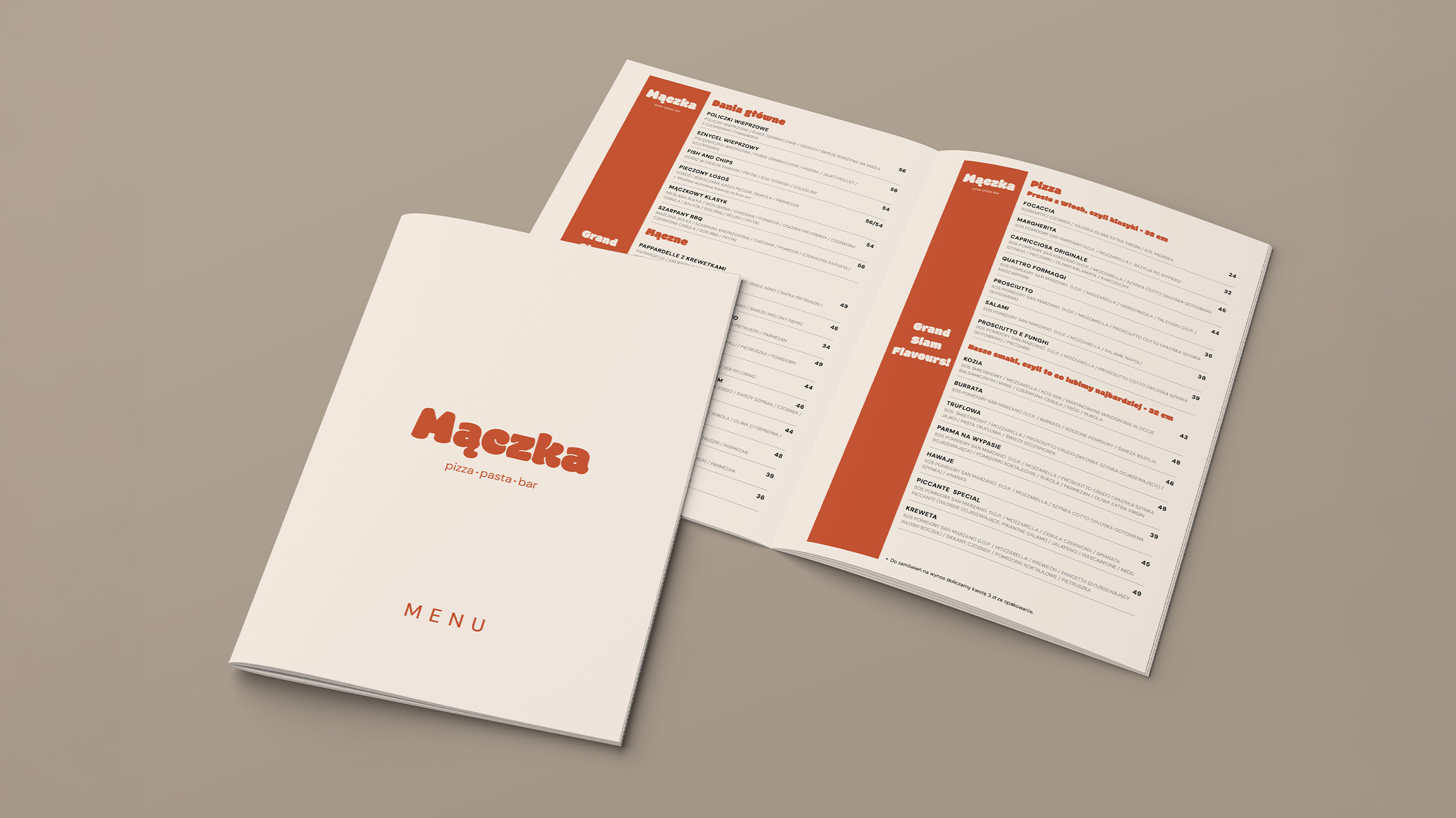 Nazwa Mączka stanowi przewrotne połączenie dwóch światów: mąki, jako podstawy kuchni włoskiej, oraz „mączki” z kortów tenisowych, nawiązującej do sportowej pasji właścicieli. Koncepcja stała się fundamentem dalszych działań wizualnych i komunikacyjnych.