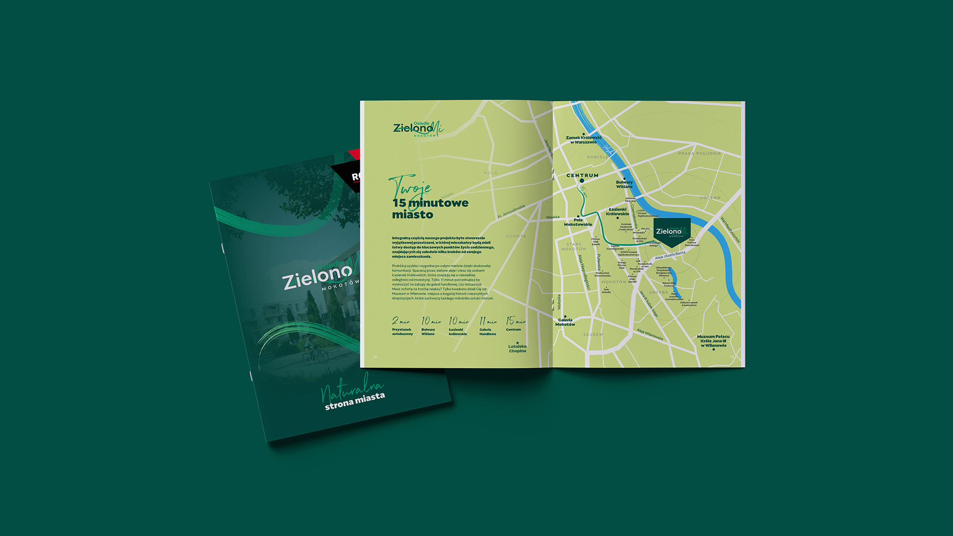 Naming oraz system identyfikacji zostały zaprojektowane tak, aby odzwierciedlać naturalny kontekst inwestycji i jej harmonijny związek z otoczeniem. Kolorystyka, typografia i kompozycja materiałów podkreślają lekkość, świeżość oraz przyjazny charakter projektu.